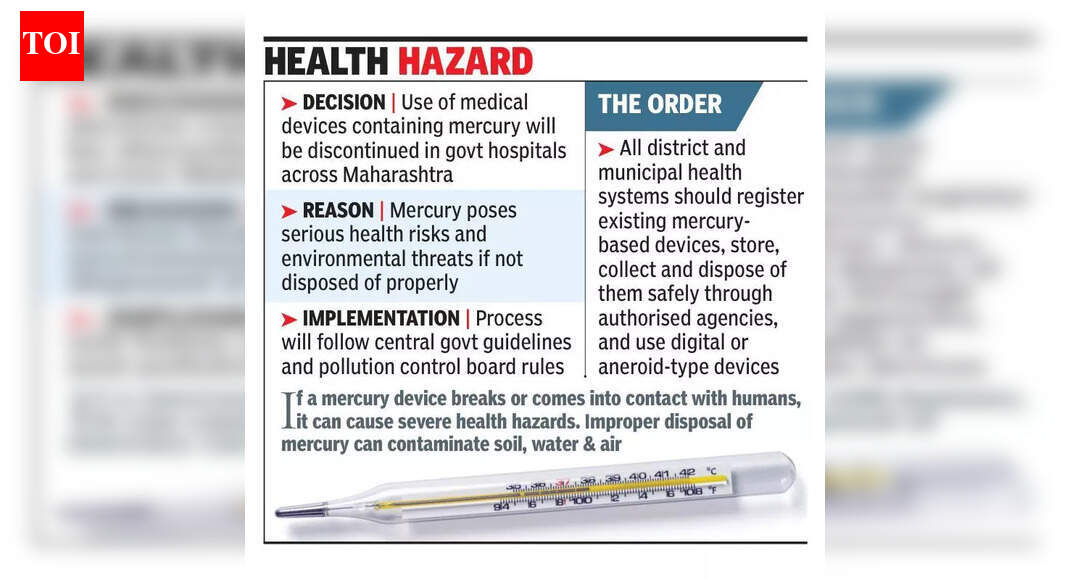 पुणे: रुग्ण, आरोग्य कर्मचारी आणि पर्यावरणाचे रक्षण करण्यासाठी राज्याच्या आरोग्य विभागाने सरकारी रुग्णालयांना थर्मामीटर आणि पारंपारिक स्फिग्मोमॅनोमीटरसह पारा-आधारित वैद्यकीय साधनांचा वापर बंद करण्याचे निर्देश दिले आहेत.विभागाने 26 डिसेंबर 2025 रोजी जिल्हा आणि नगरपालिका आरोग्य यंत्रणांना पारा-मुक्त डिजिटल आणि इलेक्ट्रॉनिक उपकरणांसारखे सुरक्षित पर्याय अवलंबण्याचे निर्देश दिले. “पारा-आधारित वैद्यकीय उपकरणे लवकरच सरकारी आरोग्य संस्थांमधून टप्प्याटप्प्याने बंद केली जातील. आरोग्य संस्थांना नवीन पारा-अनुदानित उपकरणे खरेदी करण्यास सक्त मनाई करण्यात आली आहे. डिजिटल किंवा एनरोइड (द्रवविरहित) पर्यायांचा वापर करण्याची शिफारस करण्यात आली आहे,” डॉ संदीप सांगळे, कुटुंब आणि माता आरोग्य, राज्य आरोग्य विभागाचे अतिरिक्त संचालक, राज्य आरोग्य विभाग, यांनी सांगितले.