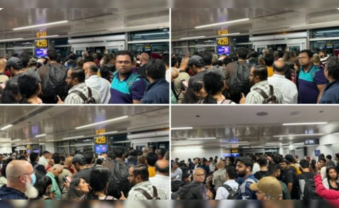 सोशल मीडियावर टर्मिनल 3 च्या गेट क्रमांक 42 ए चे चित्र सामायिक करताना एका प्रवाशाने एअर इंडियाला टॅगिंग लिहिले – स्टॅम्पेड सारख्या परिस्थिती आहेत. प्रवाश्या विपुलने लिहिले की टर्मिनल 3 वरील अट गंभीर आहे. रात्रभर अडकलेल्या प्रवासी निराश आणि अस्वस्थ आहेत. त्यांच्या मते, गेट नंबर 2 वरून सकाळी 8 हून अधिक उड्डाणे बोर्डिंग केली जात आहे, ज्यामुळे अनागोंदी झाली आहे.