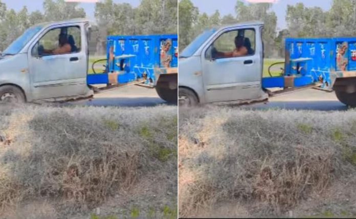 व्हायरल व्हिडिओमध्ये तुम्ही पाहू शकता की, एका व्यक्तीने वॅगनआर कारचा मागील अर्धा भाग कापून ती दोन सीटर कार बनवली आहे. आणि ते फक्त दोन चाकांनी बसवलेले दिसते. यासोबतच या व्यक्तीने एक धोकादायक युक्तीही केली आहे. या वाहनाला त्यांनी ट्रॅक्टर ट्रॉली जोडली आहे. तो गाडी चालवतो तेव्हा त्याच्या मागे ट्रॉलीही ओढली जाते. पण, या काळात गाडीचा वेग खूपच कमी राहतो. जणू काही ती ट्रॉली खेचण्यात सक्षम आहे.