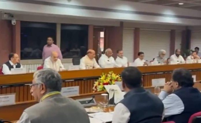सर्व पक्ष बैठक: जम्मू -काश्मीरमधील पहलगममधील दहशतवादी हल्ल्याबद्दल सरकारसह संपूर्ण देशातील राजकीय पक्ष गंभीरपणे गांभीर्याने घेत आहेत. केंद्र सरकारने केलेल्या दहशतवादी हल्ल्याविरूद्ध कारवाई करण्यासाठी गुरुवारी (24 एप्रिल) सर्व -पक्षातील बैठकीला बोलविण्यात आले. या बैठकीत सर्व पक्ष आणि विरोधी पक्ष उपस्थित होते. हिवाळ्यातील बैठकीत सर्व पक्षांच्या नेत्यांनी पहलगम दहशतवादी हल्ल्याचा जोरदार निषेध केला आहे. तर सर्व पक्षांनी दहशतवाद्यांविरूद्ध केलेल्या कारवाईला पूर्ण पाठिंबा दर्शविला आहे. तथापि, सर्व -पक्षपाती बैठकीत विरोधी पक्षांनीही सरकारकडून काही प्रश्न उपस्थित केले आणि त्यांच्या सूचना सरकारसमोर ठेवल्या.