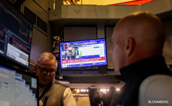 सकाळी 10 नंतर, डाउनटाउन मॅनहॅटनमधील सिबर्ट ट्रेडिंग फ्लोरवर ओरडत ओरडले. फर्मचे मुख्य गुंतवणूक अधिकारी मार्क मालेक यांनी आपल्या मुख्य व्यापा .्याने ओरडताना आपल्या कार्यालयातून धाव घेतली की अध्यक्ष डोनाल्ड ट्रम्प काही दिवसांपासून शेअर बाजारपेठ बुडवून घेत असलेल्या बोर्ड टॅरिफ रोल-आउटला निलंबित करीत आहेत.