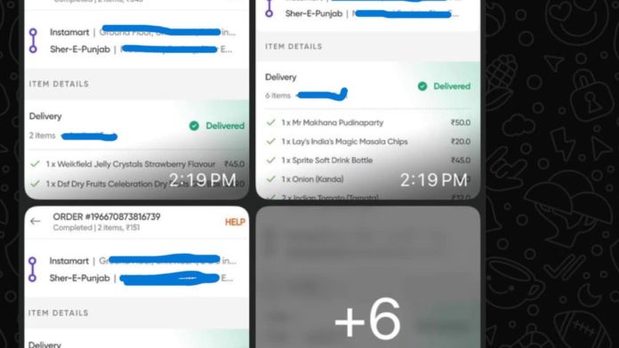 या संदेशांनंतर, आम्ही पाहतो की त्याने डिलिव्हरी अॅप्सद्वारे ऑर्डर केलेल्या विविध प्रकारच्या आयटमसाठी अनेक प्रकारच्या पावत्या पाठविल्या आहेत – पेय येथे पोस्टमध्ये दृश्यमान असलेले लेख. बिलांमध्ये सॉफ्ट ड्रिंक, जेली, कांदा, टोमॅटो इत्यादी किराणा उत्पादनांचा समावेश आहे, तसेच माखाना, चिप्स, भकारवाडी आणि इतरांसारख्या स्नॅक्सचा समावेश आहे. खाली एक नजर टाका: