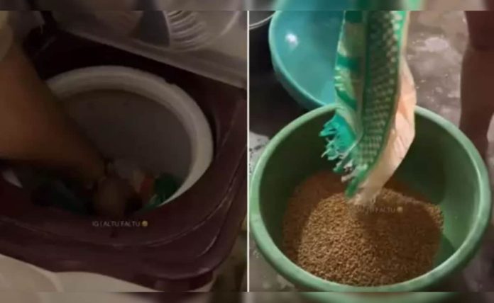 वॉशिंग मशीन मी सुखाया गेहू व्हिडिओः जगभरात एकापेक्षा जास्त जगातील व्यक्ती आहेत, ज्यांची प्रतिभा बर्याच वेळा आश्चर्यचकित करते, मग ती बर्याच वेळा विचार करते. अलीकडेच सोशल मीडिया वापरकर्त्यांना अशा एका मेहुणेचा पराक्रम पाहून देखील धक्का बसला आहे. या व्हिडिओमध्ये व्हायरल होत असताना, एका व्यक्तीने वॉशिंग मशीनमध्ये गव्हाचे कोरडे गव्हाचे चांगले जुगाड ठेवले आहे, ज्याला हे पाहून आश्चर्य वाटेल. हा व्हिडिओ इंटरनेटवर पाहिल्यानंतर, काही लोक कौतुकाचे पूल बांधत आहेत. त्याच वेळी, काही लोक एकापेक्षा जास्त प्रतिक्रिया देऊन खूप आनंद घेत आहेत.